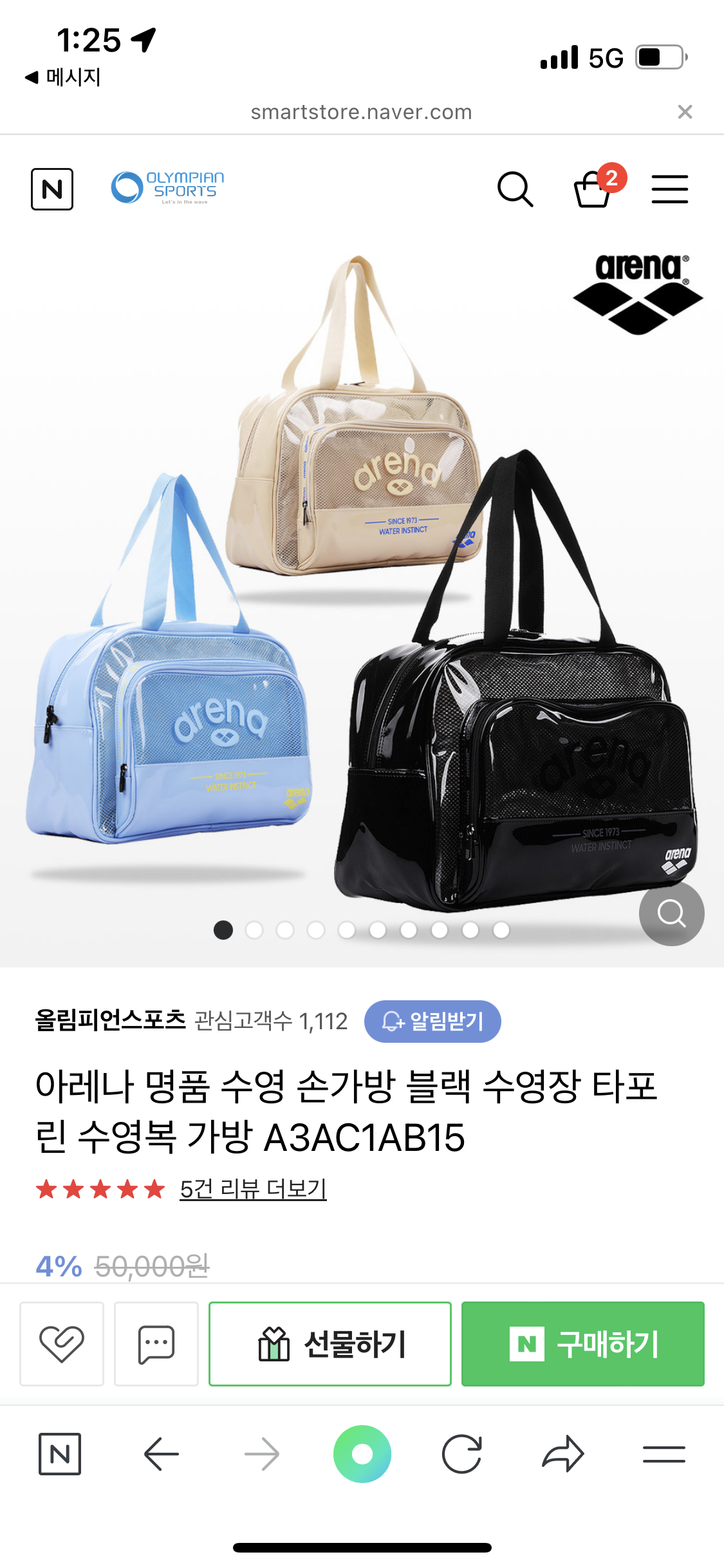 최근에 고심해서 산 아레나 수영가방.