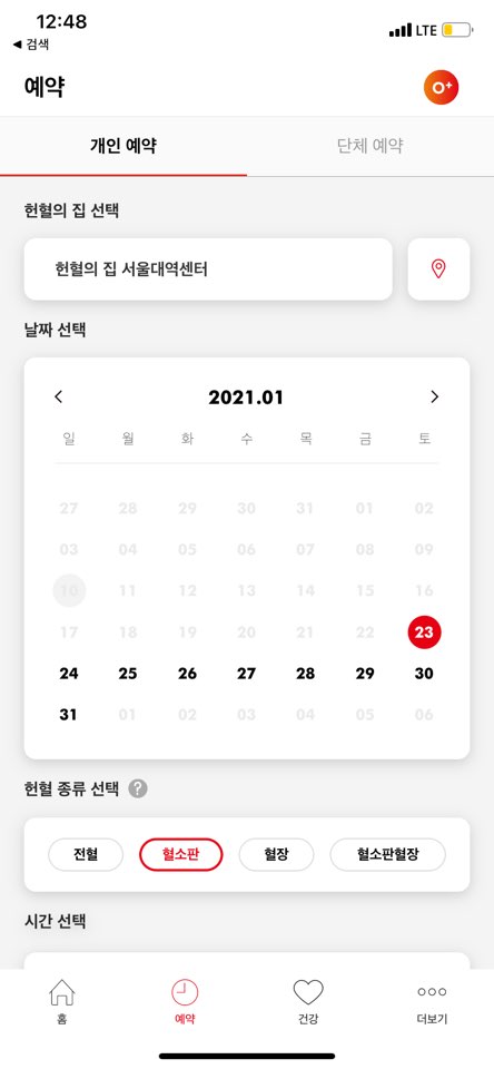예약을 누르면, 헌혈의 집과 날짜를 클릭할 수 있다.
