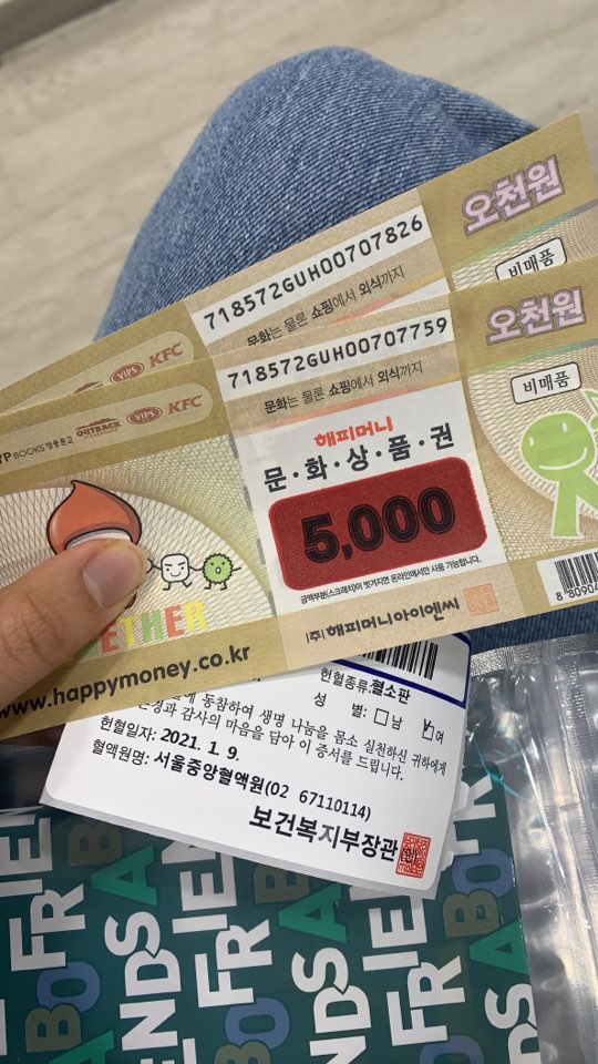 헌혈 기념품으로는 문상 2개를 골랐다. 여러모로 요긴하니까..