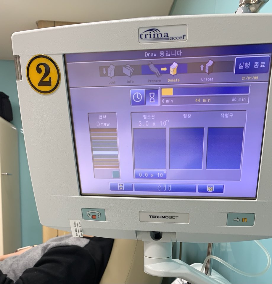 혈소판 헌혈은 거의 1시간 20분이 걸렸다...ㅠㅠ 피가 잘 안나와서 시간이 자꾸 늘어났다.